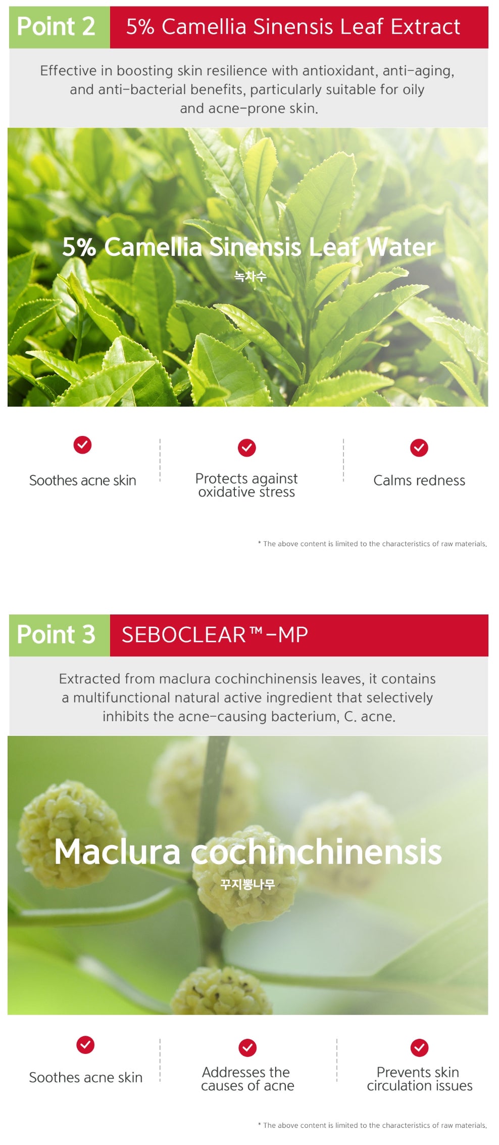 Gently soothes irritated, reddened skin with 5% camellia sinensis leaf extract and chamaecyparis obtusa water.