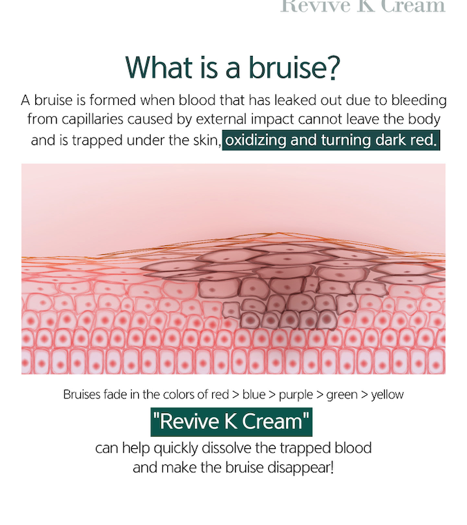 Experience the difference with and without bruise cream. High Vitamin K content from Spain! Bruise Removal! Skin Recovery! The REAL bruise cream.